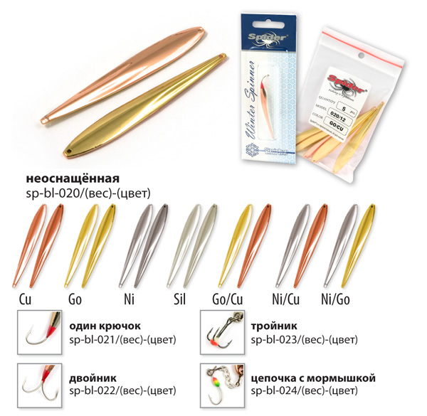 Коллекция зимних блёсен для вертикального блеснения от Spider, прошла многолетнюю селекцию и представляет все самое лучшее, что было создано из блесен для зимней рыбалки на данный момент. Все блёсна цельнометаллические, изготовленные методом холодной ковки из латуни. Благодаря новым технологиям производства удалось добиться максимально реалистичной и стабильной игры приманки, на рыболовном сленге это называется «блесна звенит». Проверенные временем классические модели, а так же уловистые новинки позволяют рыболову каждый раз добиваться успеха на рыбалке.