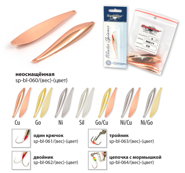 Коллекция зимних блёсен для вертикального блеснения от Spider, прошла многолетнюю селекцию и представляет все самое лучшее, что было создано из блесен для зимней рыбалки на данный момент. Все блёсна цельнометаллические, изготовленные методом холодной ковки из латуни. Благодаря новым технологиям производства удалось добиться максимально реалистичной и стабильной игры приманки, на рыболовном сленге это называется «блесна звенит». Проверенные временем классические модели, а так же уловистые новинки позволяют рыболову каждый раз добиваться успеха на рыбалке.