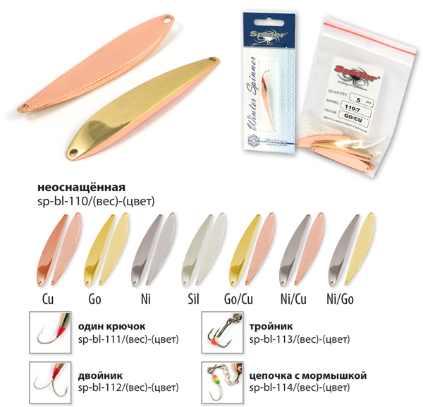 Коллекция зимних блёсен для вертикального блеснения от Spider, прошла многолетнюю селекцию и представляет все самое лучшее, что было создано из блесен для зимней рыбалки на данный момент. Все блёсна цельнометаллические, изготовленные методом холодной ковки из латуни. Благодаря новым технологиям производства удалось добиться максимально реалистичной и стабильной игры приманки, на рыболовном сленге это называется «блесна звенит». Проверенные временем классические модели, а так же уловистые новинки позволяют рыболову каждый раз добиваться успеха на рыбалке.