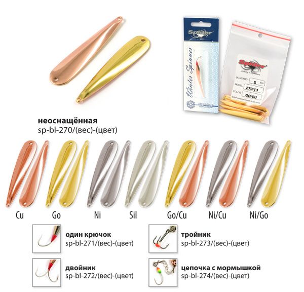 Коллекция зимних блёсен для вертикального блеснения от Spider, прошла многолетнюю селекцию и представляет все самое лучшее, что было создано из блесен для зимней рыбалки на данный момент. Все блёсна цельнометаллические, изготовленные методом холодной ковки из латуни. Благодаря новым технологиям производства удалось добиться максимально реалистичной и стабильной игры приманки, на рыболовном сленге это называется «блесна звенит». Проверенные временем классические модели, а так же уловистые новинки позволяют рыболову каждый раз добиваться успеха на рыбалке.