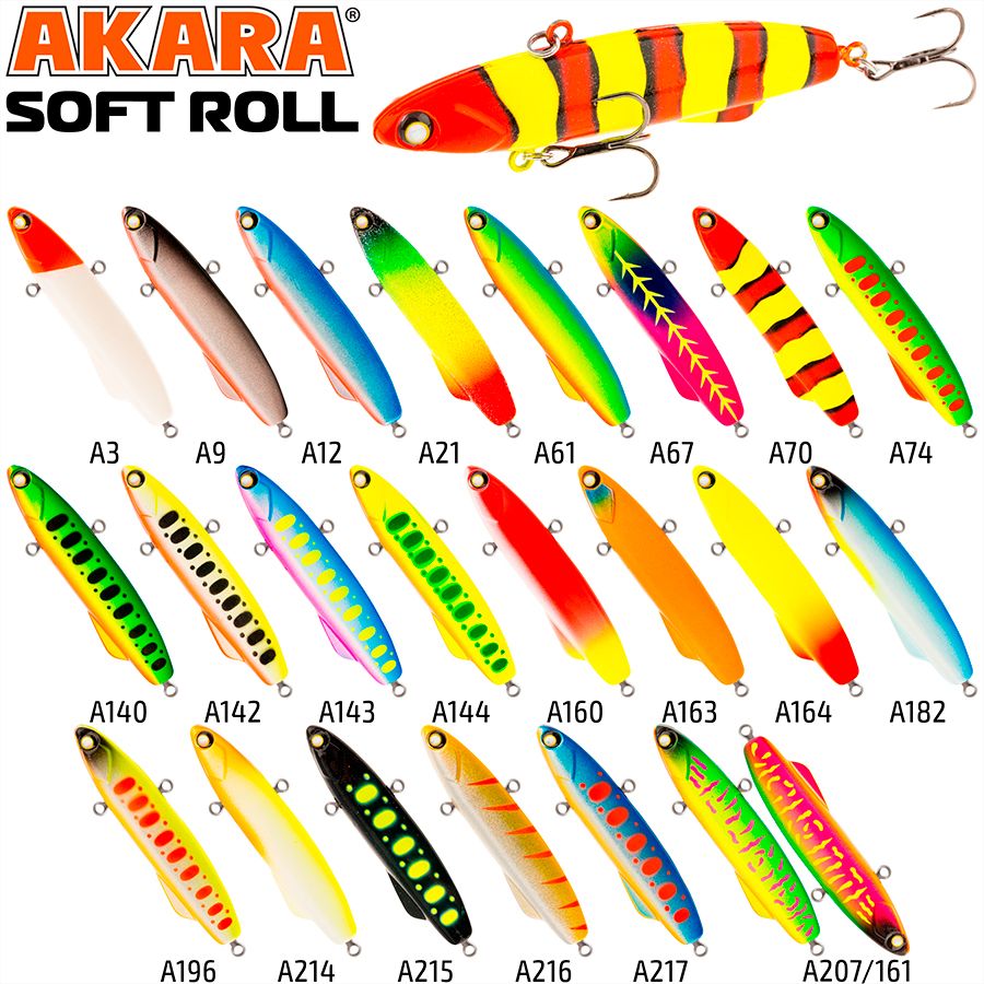 Воблер Akara раттлин Soft Roll - отличительной особенностью данной приманки, является силиконовый материал, использованный в изготовлении. Приманка достаточно прочная, и не сильно повреждается хищником. Раттлин Soft Roll обладает неповторимой и естественной игрой, близкой, по характеру, к балансирам, но с более медленным возвращением в исходную точку после взмаха. В подвешенном состоянии, держится строго горизонтально, в воде нос опускается ниже, что позволяет разнообразить игру. Выпускается в трех размерах 70, 80 и 90 мм.