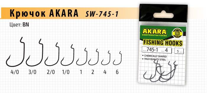Купить Крючок Akara SW-745-1 BN №4/0 (5шт.) офсет в магазине www.predator.msk.ru вы можете заказав доставку по телефону 8-921-966-99-77