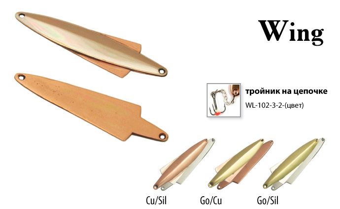 Блесна зим. Крыло 10 гр. 50 мм Go/Sil тройник на цепочке